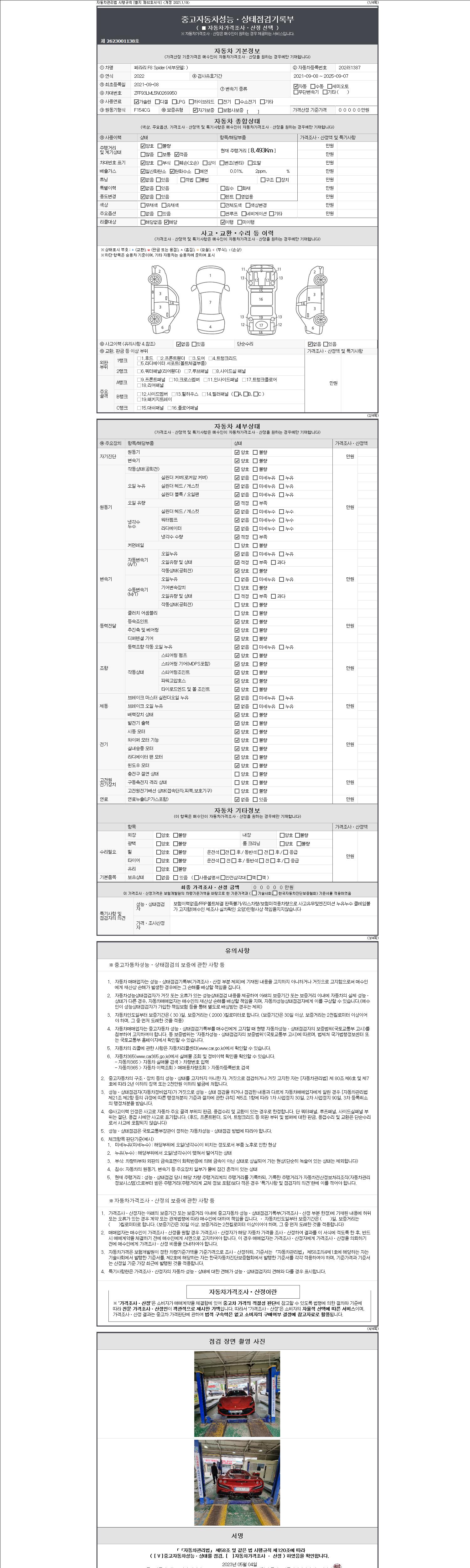 - 사고유무 : 성능기록부 참조