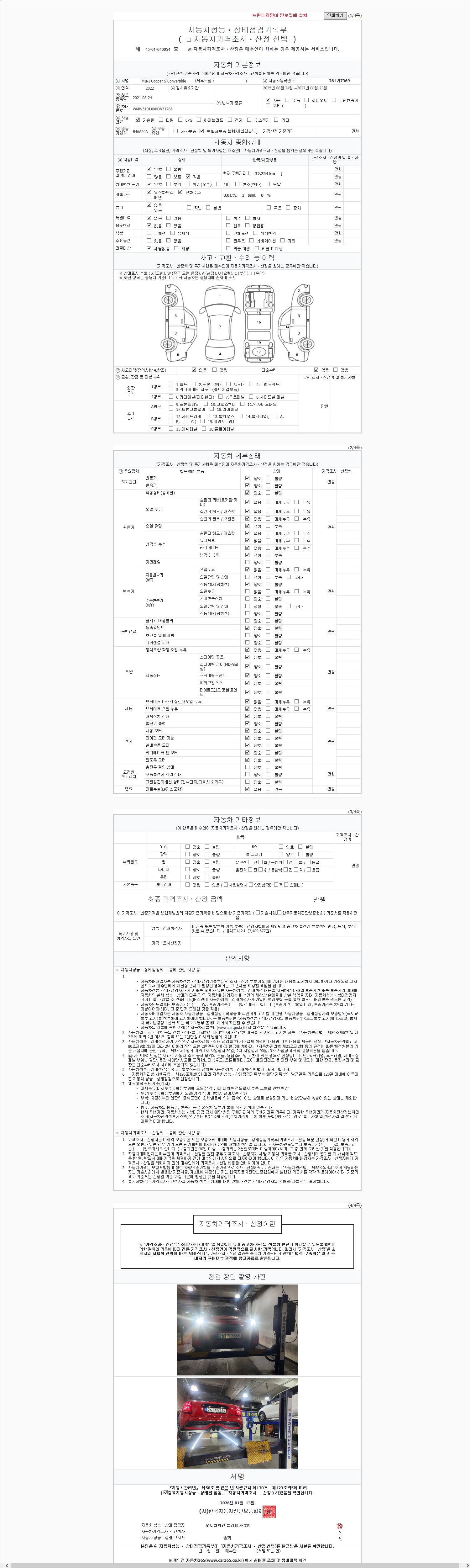 • 2. 차량 등록증이나 성능점검지 등을 상담자에게 요청및 확인하시고 사전에 미리 점검 하시기를 권유드립니다.