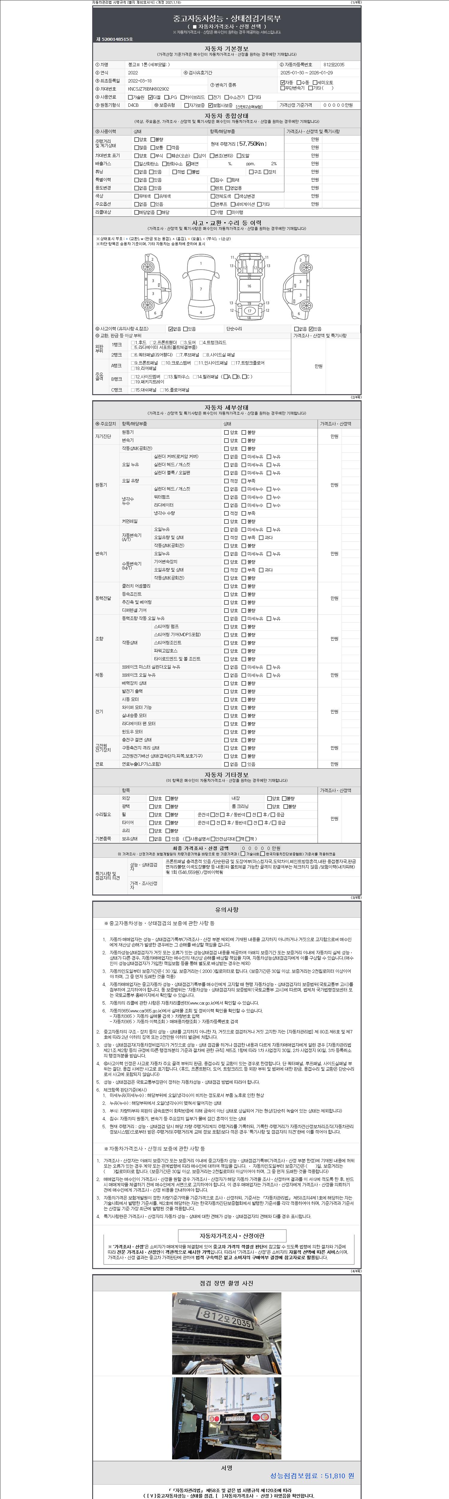 | 주행거리 | 56,757 km | 차량번호 | 812모2035 | 사고유무 | 성능기록부 참조 | 제시번호 | 제 2147483647 호 |