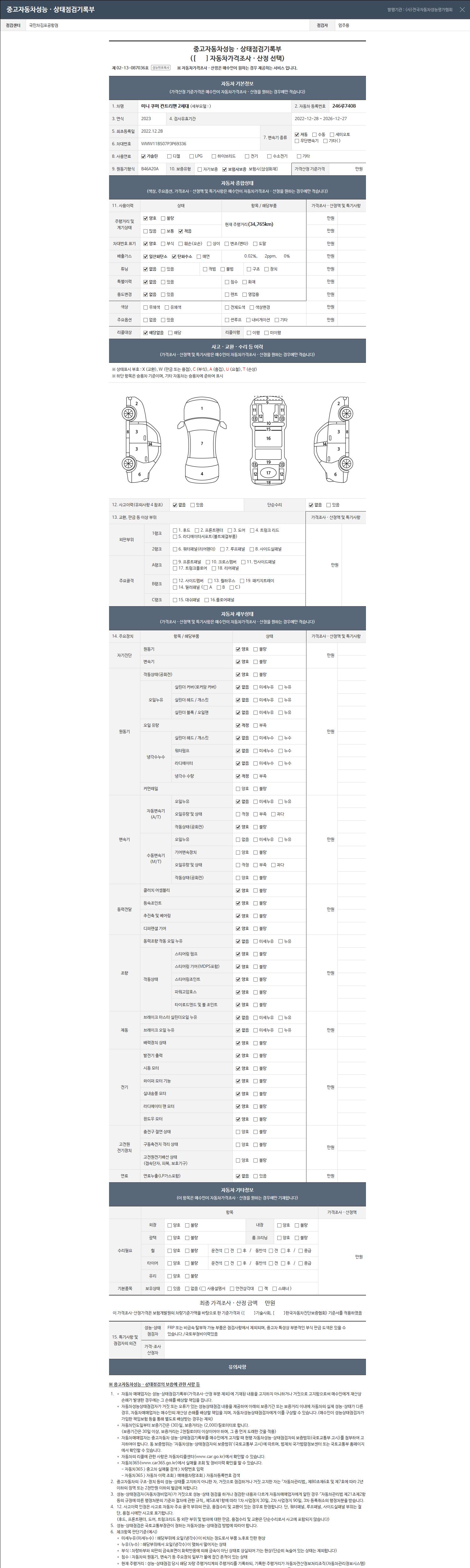 | 주행거리 | 34,778 km | 차량번호 | 246루7408 | 사고유무 | 성능기록부 참조 | 제시번호 | 제 2025208928 호 |