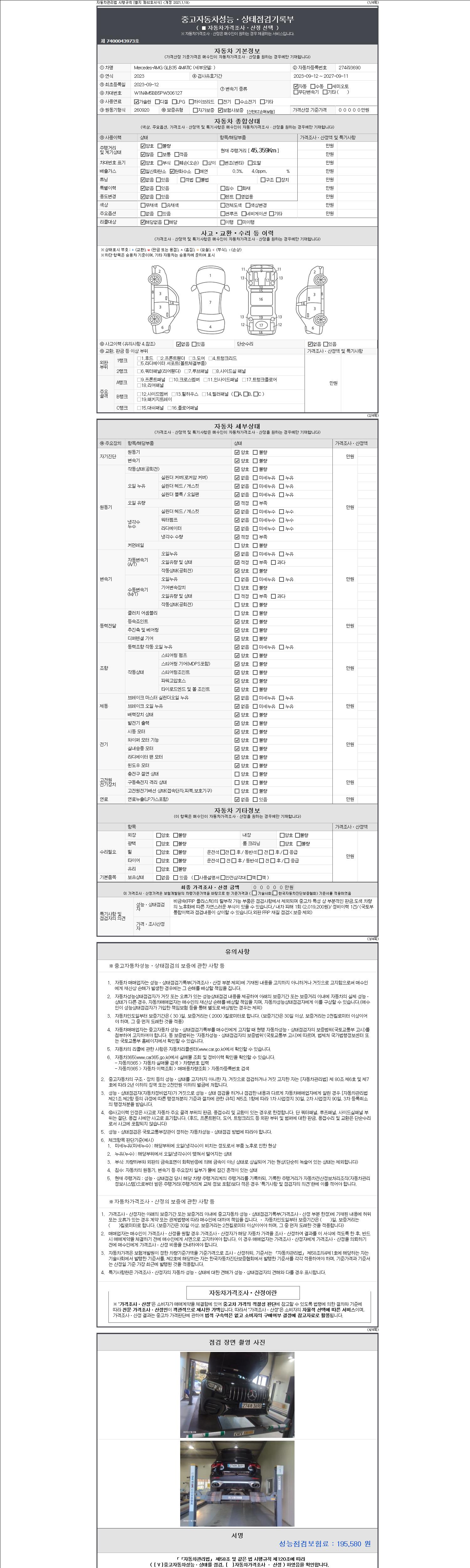 - 사고유무 : 성능기록부 참조