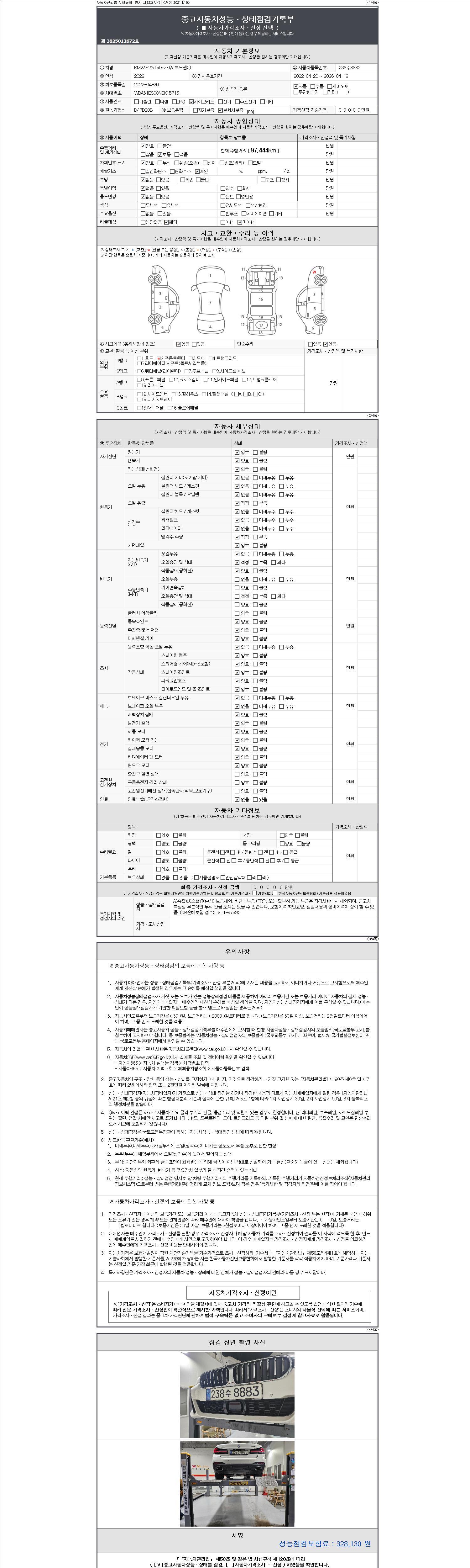 | 주행거리 | 97,444 km | 차량번호 | 238수8883 | 사고유무 | 성능기록부 참조 | 제시번호 | 제 2147483647 호 |