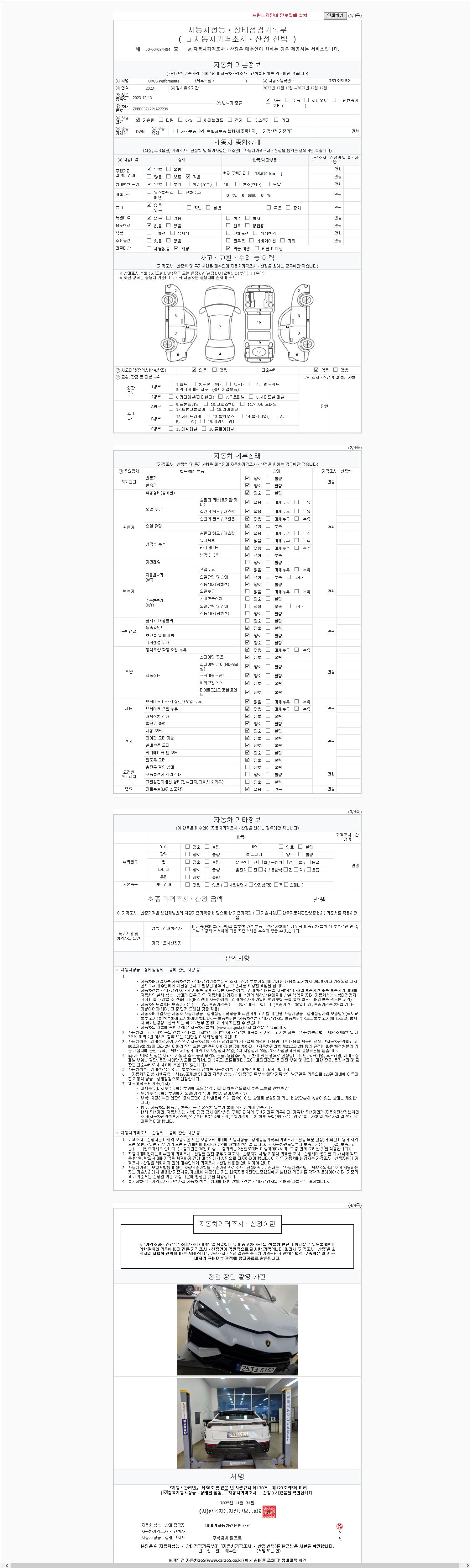 | 주행거리 | 18,621 km | 차량번호 | 253소5152 | 사고유무 | 성능기록부 참조 | 제시번호 | 제 2147483647 호 |