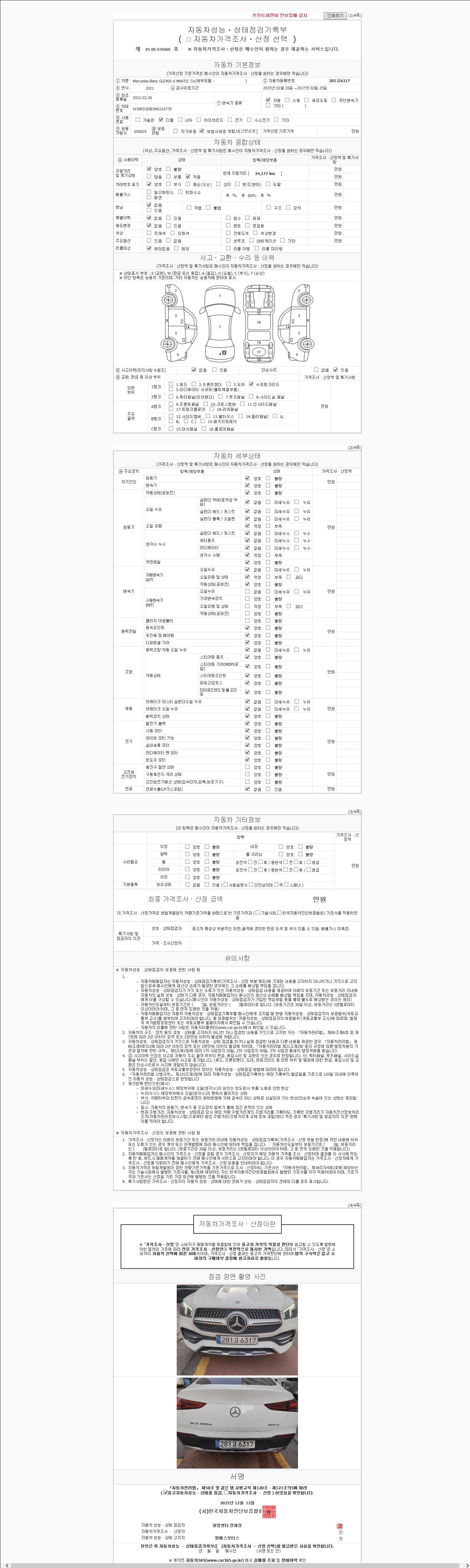 | 주행거리 | 24,177 km | 차량번호 | 281고6317 | 사고유무 | 성능기록부 참조 | 제시번호 | 제 2147483647 호 |