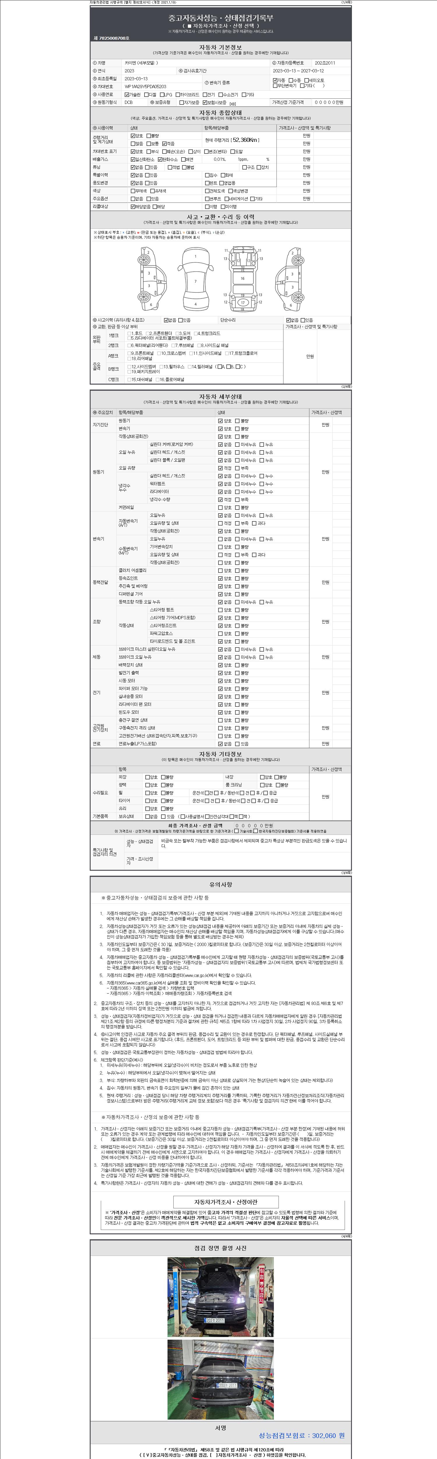 | 주행거리 | 52,360 km | 차량번호 | 202조2011 | 사고유무 | 성능기록부 참조 | 제시번호 | 제 2147483647 호 |