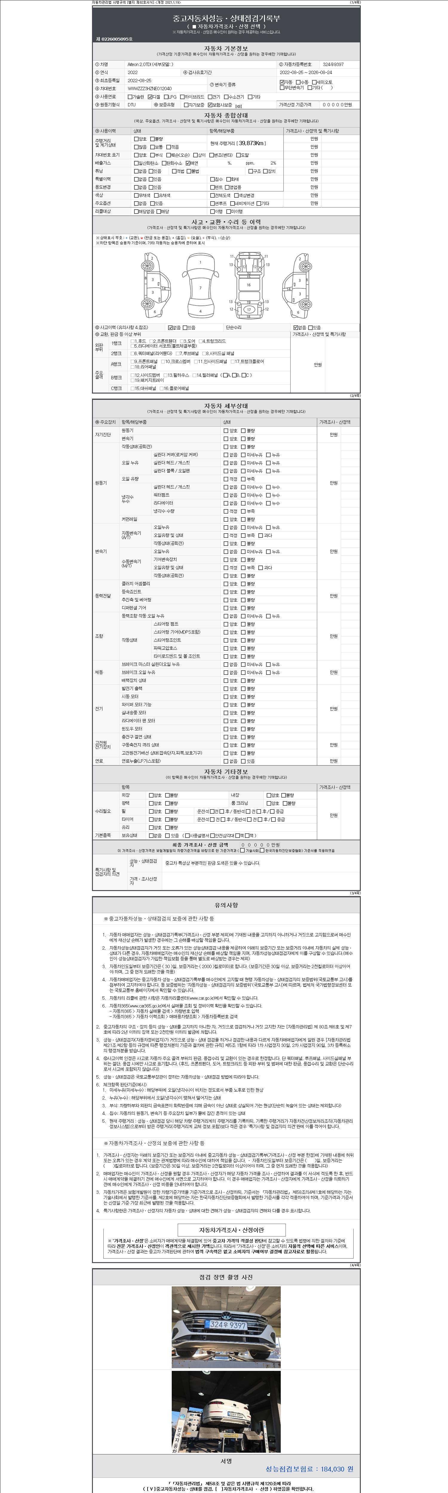 - 2. 차량 등록증이나 성능점검지 등을 상담자에게 요청및 확인하시고 사전에 미리 점검 하시기를 권유드립니다.