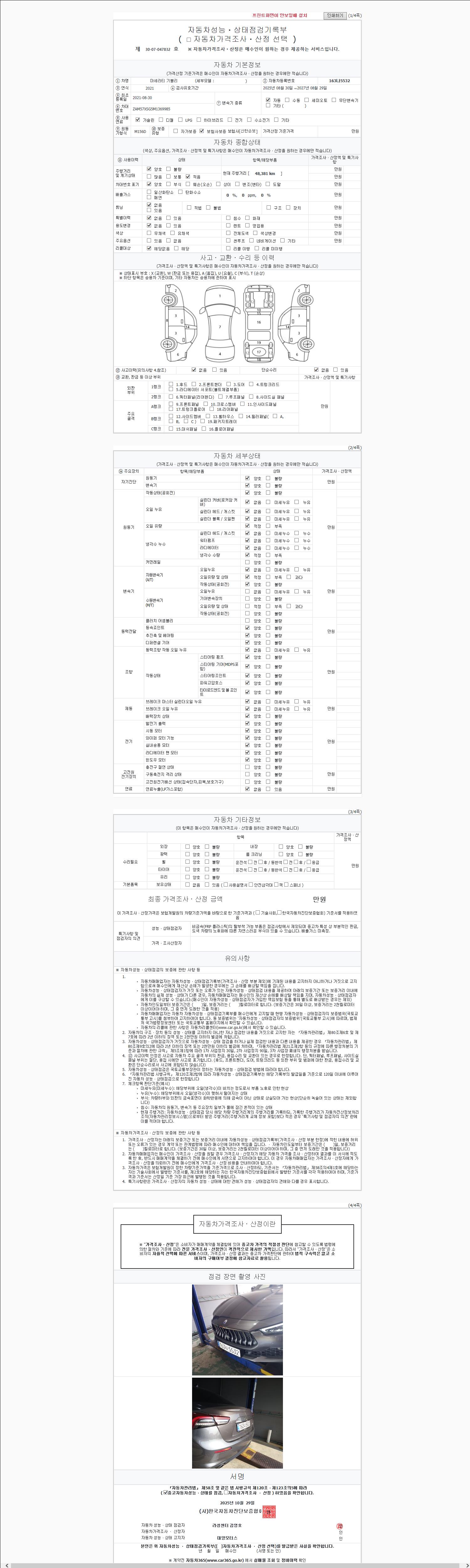 | 주행거리 | 48,376 km | 차량번호 | 163나5532 | 사고유무 | 성능기록부 참조 | 제시번호 | 제 2147483647 호 |